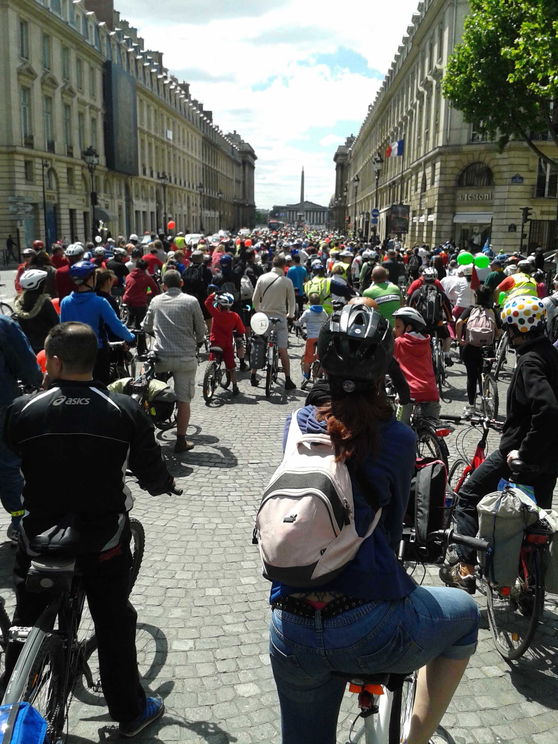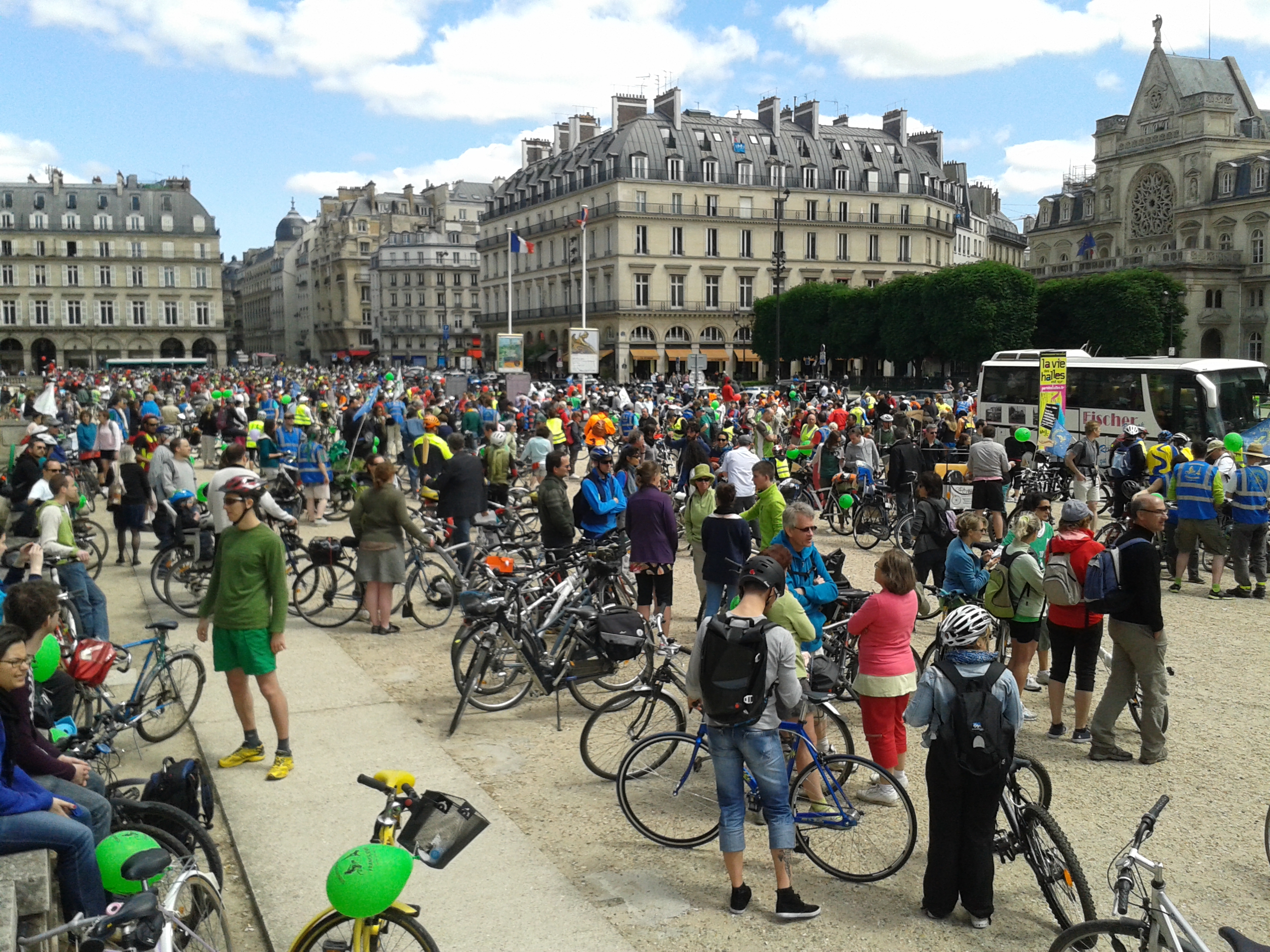Nous avons rejoint à Colombes nos collègues des Yvelines et du Val d’Oise, puis nous avons cheminé ensemble à travers Courbevoie puis Neuilly, rejoints au fur et à mesure par d’autres groupes de cyclistes.