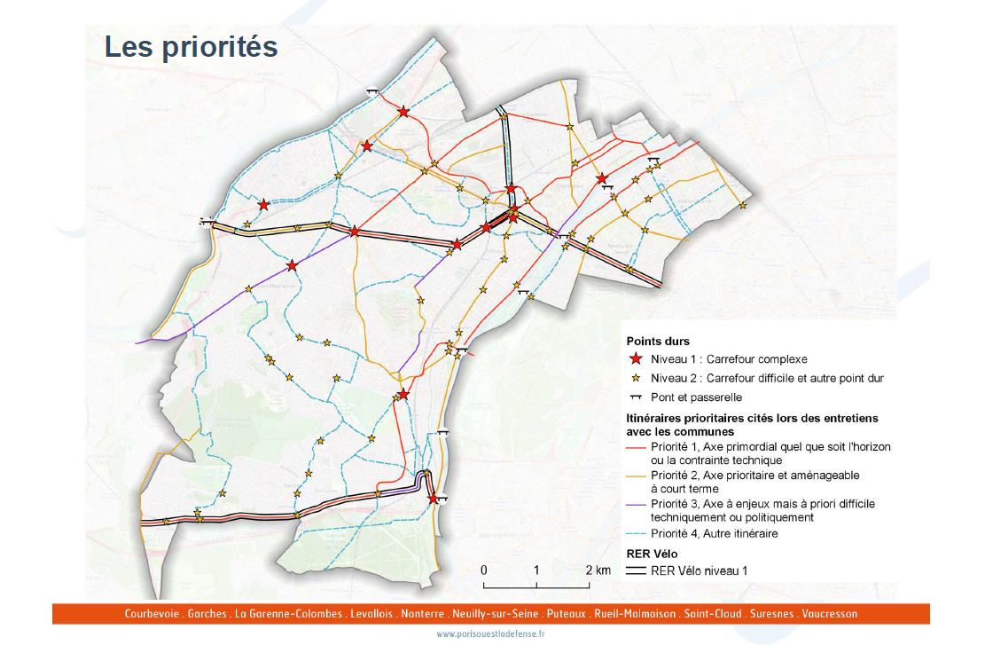 Il appartient aux villes du territoire de mettre en œuvre les aménagements prévus, sur leur domaine public et dans leur programmation de travaux, et dans le cadre de leur relation avec le conseil départemental, sur les voiries de celui-ci. Il est donc très important que chaque association de vélos de l’EPT POLD s’assure auprès de leur mairie de la réalisation de ces travaux. L’EPT POLD n’a pas de budget, c’est un établissement de coordination et nous n’avons pas d’échéancier précis.