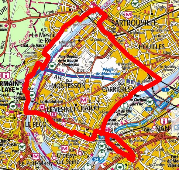 Direction le Pecq puis berges de Seine au Mesnil le Roi et retour par Houilles puis Carrières.