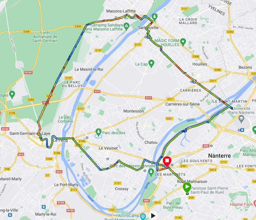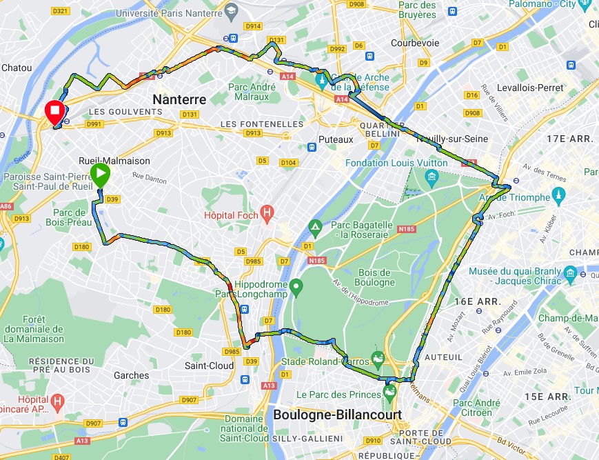 La majorité du groupe ira jusqu’à Paris, mais nous proposons un retour depuis Colombes pour ceux auraient des obligations à midi à Rueil . Et depuis Paris, des groupes se forment en général spontanément, pour un retour ensemble l’après midi par affinités vers notre banlieue. C’est à chacun de s’organiser. A dimanche avec un vélo en bon état et un pique nique le cas échéant !!