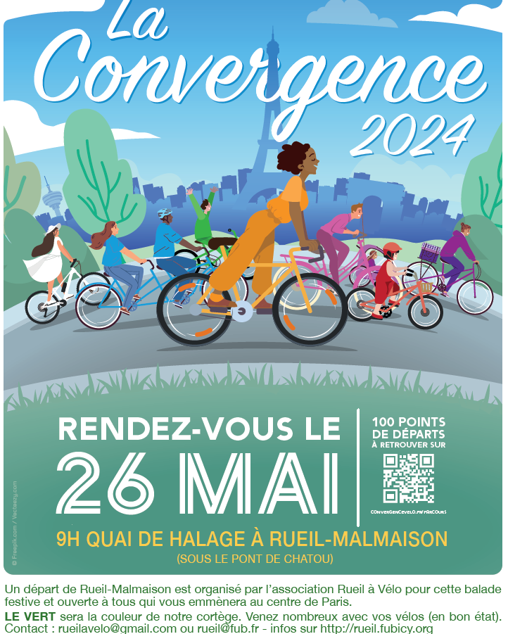 Rueil A Vélo organise un départ avec rdv quai Giquel à Rueil à 9 heures (sous le pont routier de Chatou).