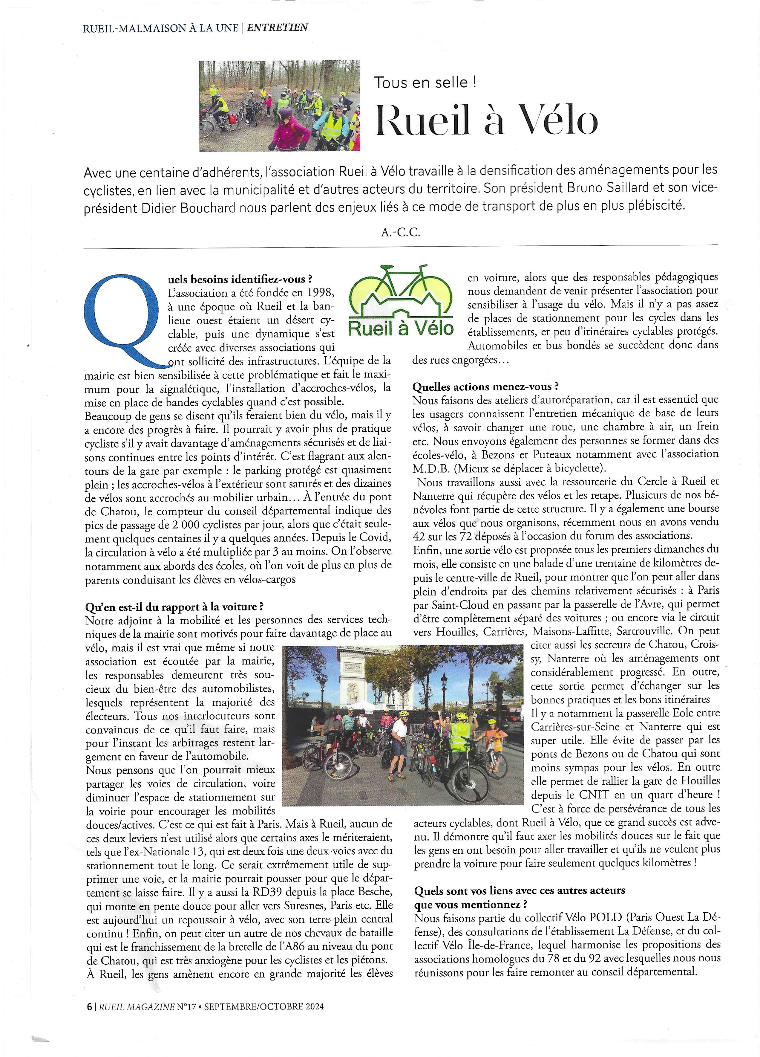Rueil A Vélo fait partie du collectif d’associations Rueil En Transition, avec Thermie (rénovation thermique des logements et maréchage urbain), La Chouette Valérienne (défense de la biodiversité, écologie urbaine), et bien d’autres (voir les détails sur https://rueilentransition.wordpress.com/).