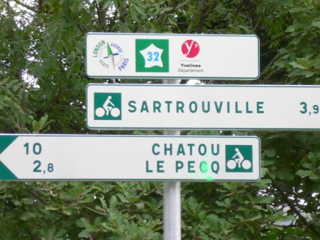 Découverte de la portion entre Chatou et Sartrouville de la véloroute Paris-Londres, bien fléchée, retour par les champs de Montesson.